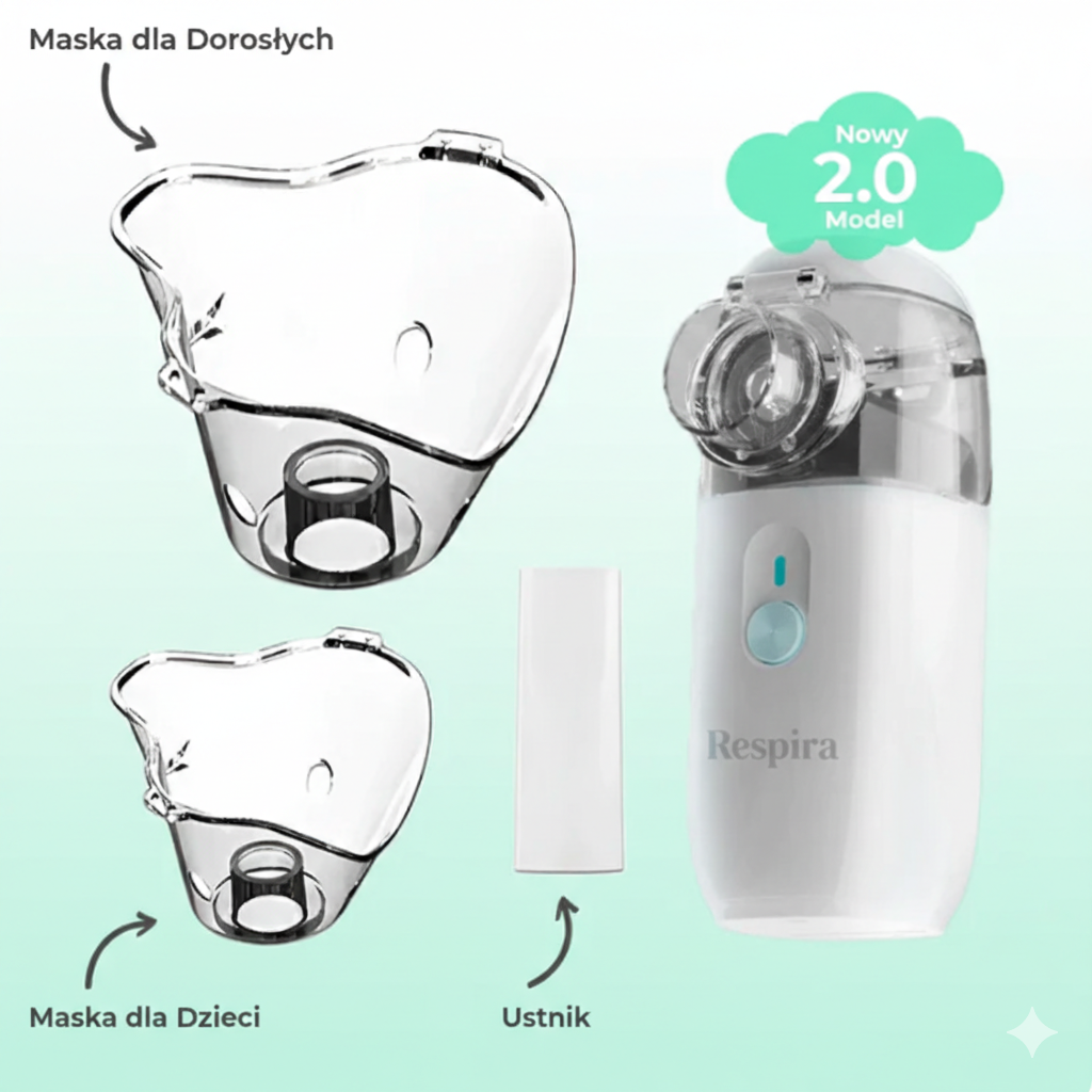 Wystarczy dodać roztwór soli fizjologicznej, nacisnąć jeden przycisk, a Respira® wytworzy delikatną mgiełkę dla dzieci i dorosłych.